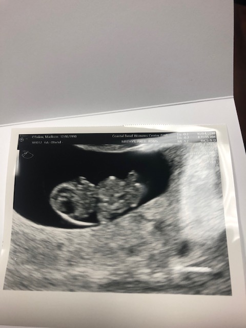 12 weeks: We had our third ultrasound and doctors visit today. At this visit they measured the nuchal thickness of the fetus along with my blood work for risk of down syndrome, trisomy 18 & 13, and other chromosomal abnormalities. All (THANKFULLY) came back within normal ranges. My doctor found that I had also lost two pounds since my last visit and put me one two medications to help with the morning sickness. Let me just tell you those are miracle drugs. I feel like a new person!