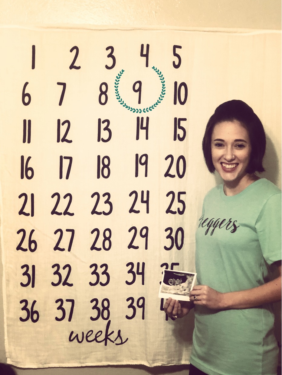 As you can see from the lack of pictures, I was not feeling myself throughout the entirety of the first trimester. These were probably the only three days in 3 months that I put on make-up…not an exaggeration I promise. (Countdown Calendar from BATZkids Milestone Blankets.)